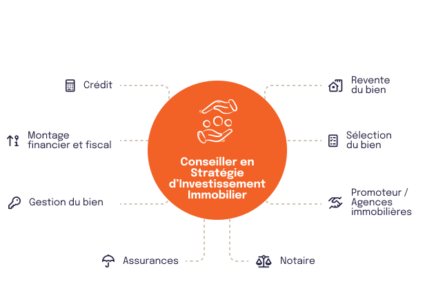 Un conseiller en gestion de patrimoine gère votre patrimoine global (immobilier, placements financiers, fiscalité…). Un conseil en stratégie d’investissement immobilier se concentre uniquement sur l’immobilier : montage du projet, optimisation de la rentabilité, sélection des biens, etc., tout en tenant compte de votre situation patrimoniale. Si votre priorité est l’investissement immobilier, faites-vous accompagner par un expert spécialisé.